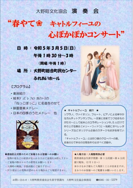 キャトルフィーユの心ぽかぽかコンサートのお知らせです。