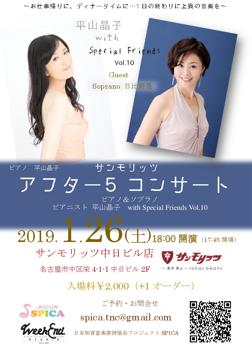 1月26日は、間も無く解体されて超高層ビルに生まれ変わる予定の名古屋市栄のビル『中日ビル』2階 カフェ「サンモリッツ」にて、ピアノの平山晶子with special friends vol.10として、1時間ほどのコンサートにゲスト出演させていただくこととなっております。 寒い冬の夜、お仕事帰りに演奏を聴きにいらっしゃいませんか?
